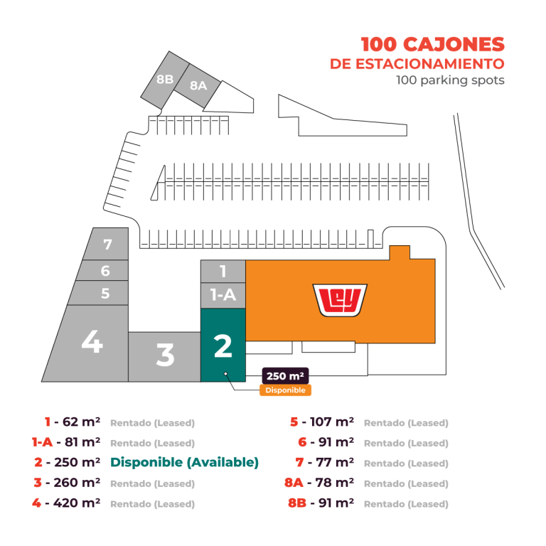 Primera plaza comercial en Privadas Condesa con 10 locales desde 62 metros cuadrados hasta 420 metros cuadrados.